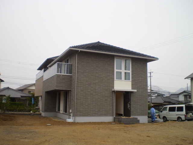 【大分市S様邸 南東面】暖色系のサイディングで貼り分け、温かみのある建物に仕上がりました。