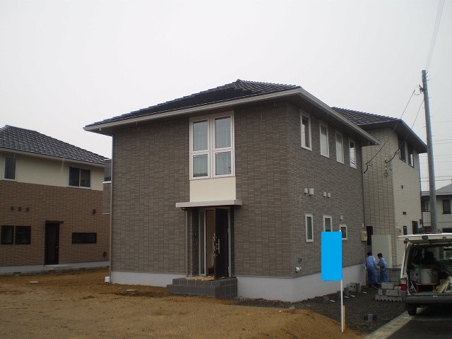 【大分市M様邸】1階部分のタイル調のサイディングを2階部分の高い位置まで貼ることにより、安定感のある建物に仕上がりました。