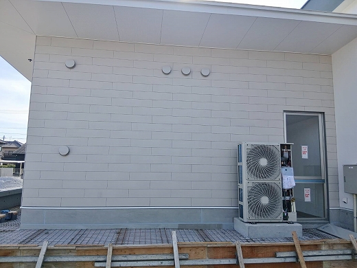 今回使用した外装材の中にはLAPーWALLという商品があります。こちらの商品は、通常の窯業系サイディングの1/8の面積で重ねて張っております。