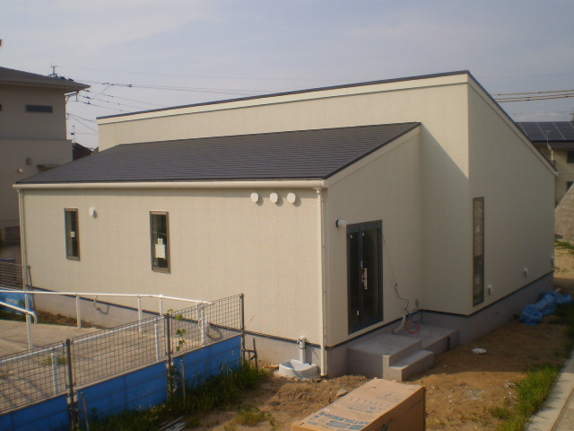 メインはホワイトのサイディング貼りで、出入り口はバリアフリーにし、