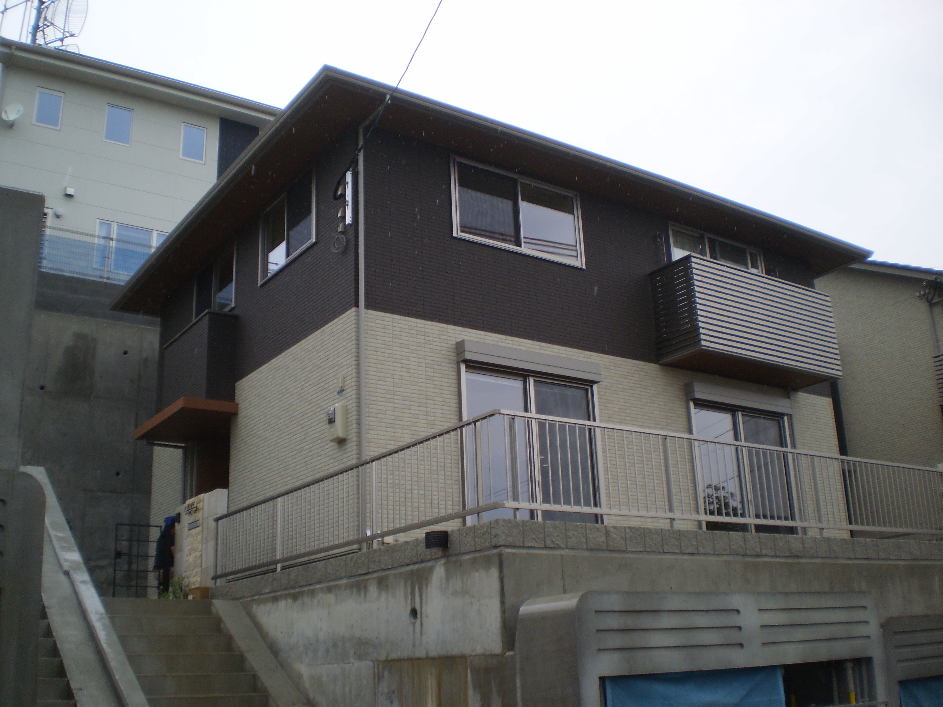 二階部分に濃色のサイディングを貼ることにより、安定感のある建物に仕上がりました。
