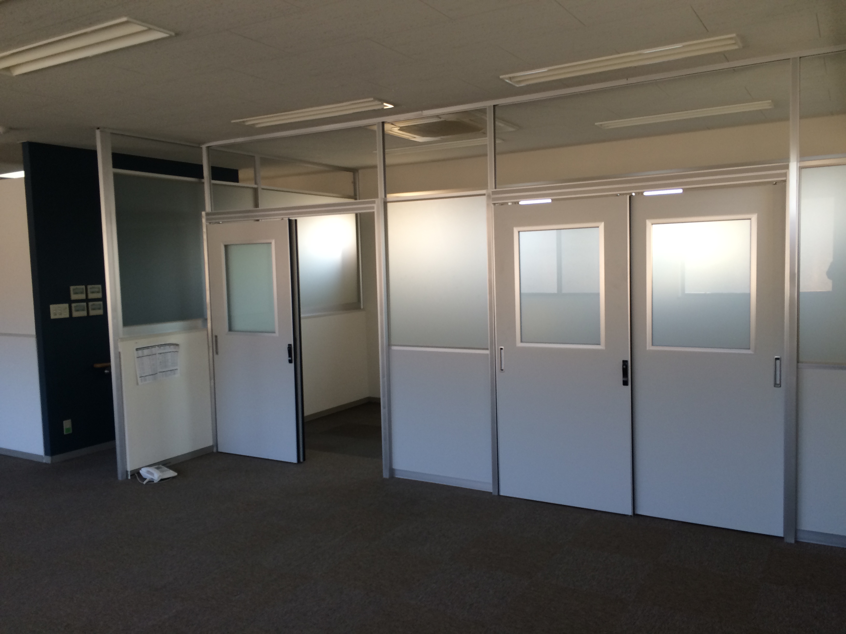 L型に配置されていたパーテーションを一度全て解体し、部材を組み替えて設置し直しました。