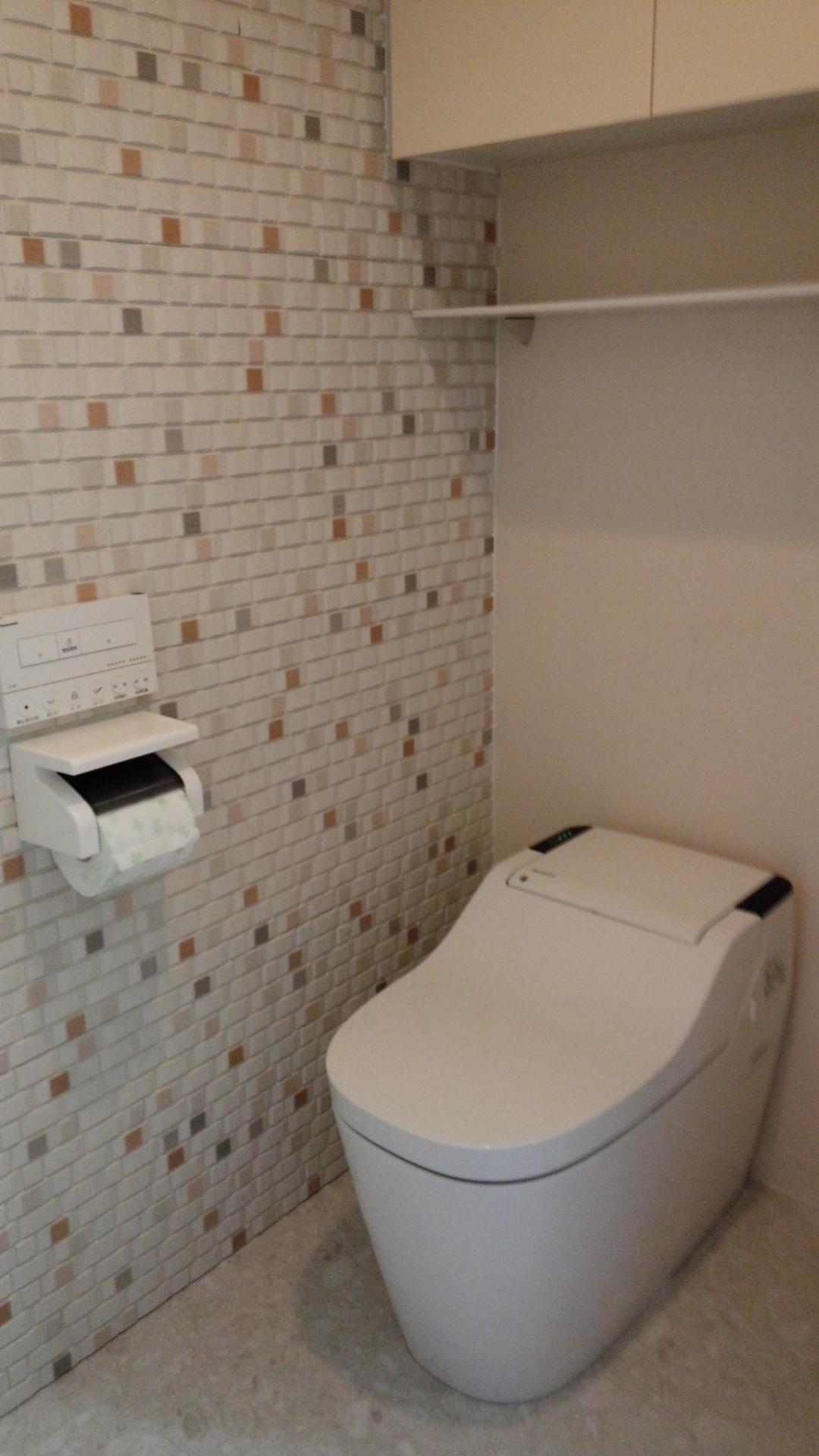 パナソニックのアラウーノに交換し壁も床もデザインパネルに貼り替えました。