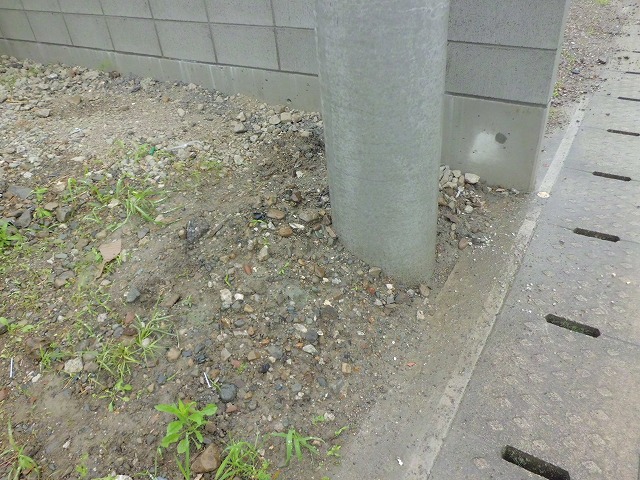 敷地内にある電柱のまわりもインターロッキングブロックで囲いました。