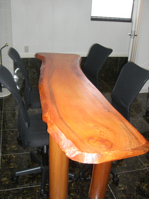 けやきの一枚板をみがいて仕上げました。