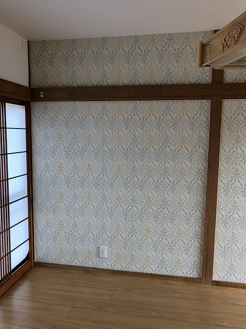 建物内ほとんどの天井と壁が漆喰だったため、ベニヤ合板を増し張りしクロスを張って