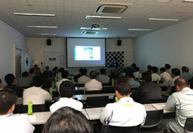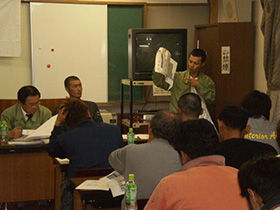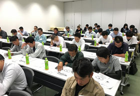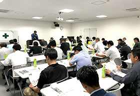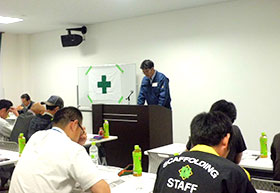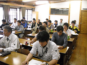 その後20分程の安全対策ビデオ研修を行いまして、工事における注意点、お客様の検査で指摘を受けやすい箇所、防止策の説明等を課長より説明しております。