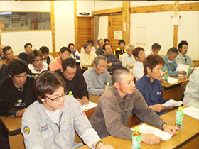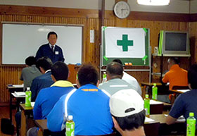 最後に常務の方より労災保険特別加入制度についての説明を行い、 土、日、祝日の現場稼働について、近隣の方への迷惑になる場合があるので 充分配慮を行う事を再確認致しました。