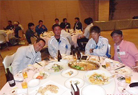 まず乾杯のご挨拶を㈱市岡 北九州営業所長川辺様にして頂きました。 所長を始め、県外からも多数参加して頂き、感謝しております。 現場では、なかなか一緒になることの無い業者の皆様も打ち解けて、楽しい時間を過ごす事が出来たようです。 締めのご挨拶は福岡での会議より戻られたばかりの、(株)LIXILトータル販売 大分営業所長 新西様に して頂き、これからの皆様のご発展を祈願致しまして、三本締めにて終了致しました。